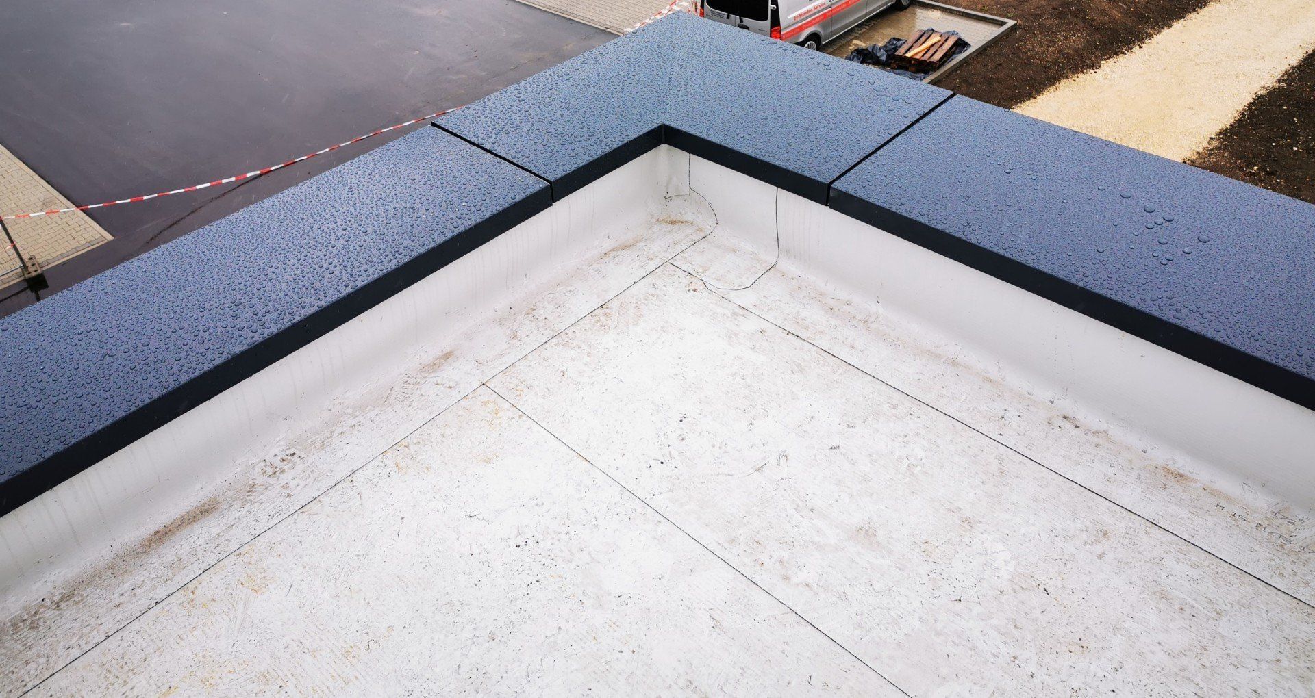 Eine 2-mm-Mauerabdeckung, ausgeführt in RAL 7016 anthrazitgrau